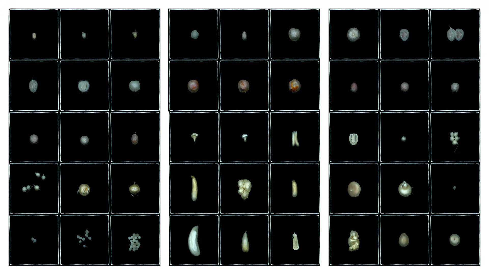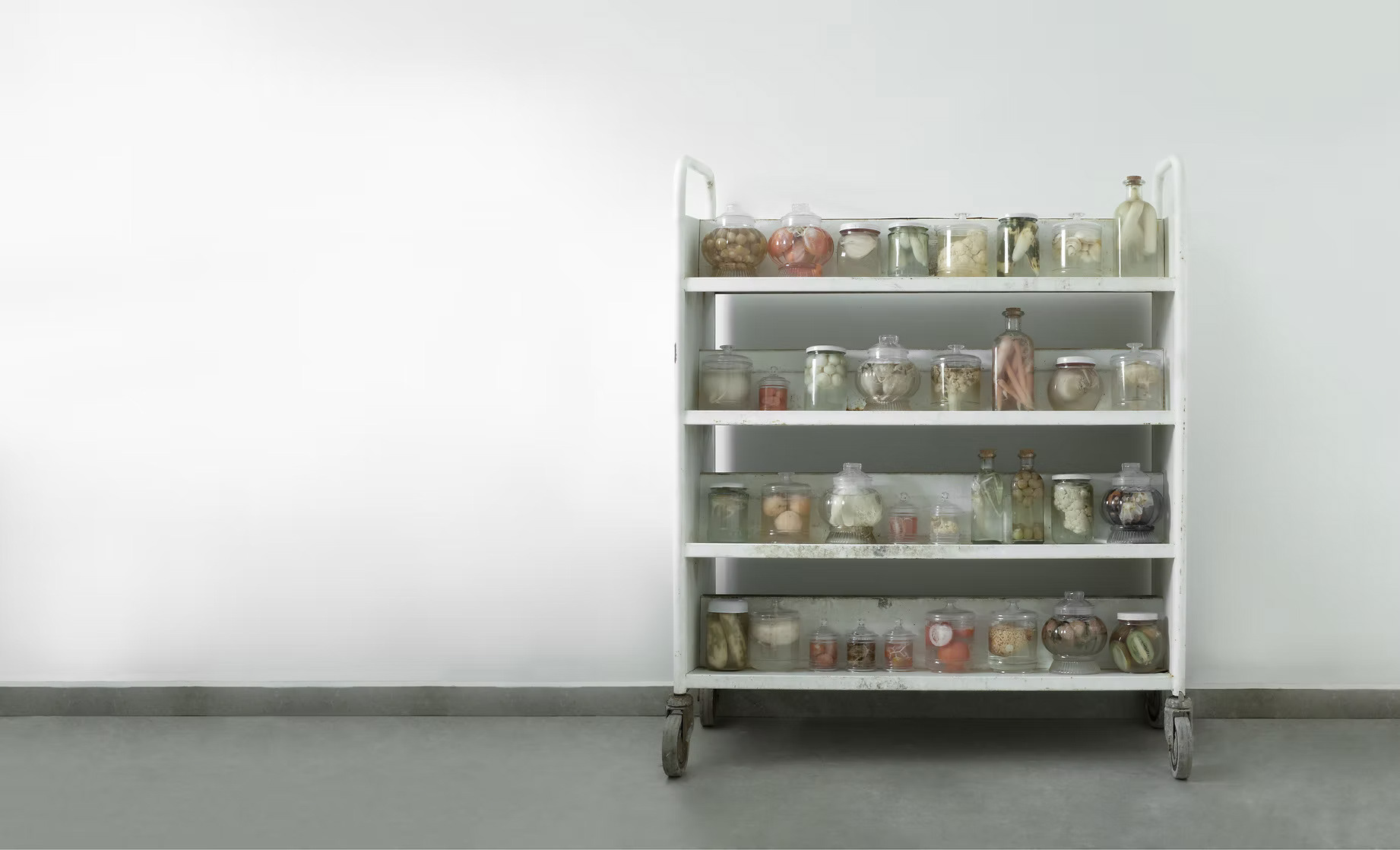 The entire project operates within an uncanny tension between spaces and categories: between jars that recall historical natural history collections and warm home kitchens; between specimens preserved in liquid and pickled vegetables; between photography and radiography; between domesticity and clinical detachment; between flora, fauna, and the stillness of inanimate nature.