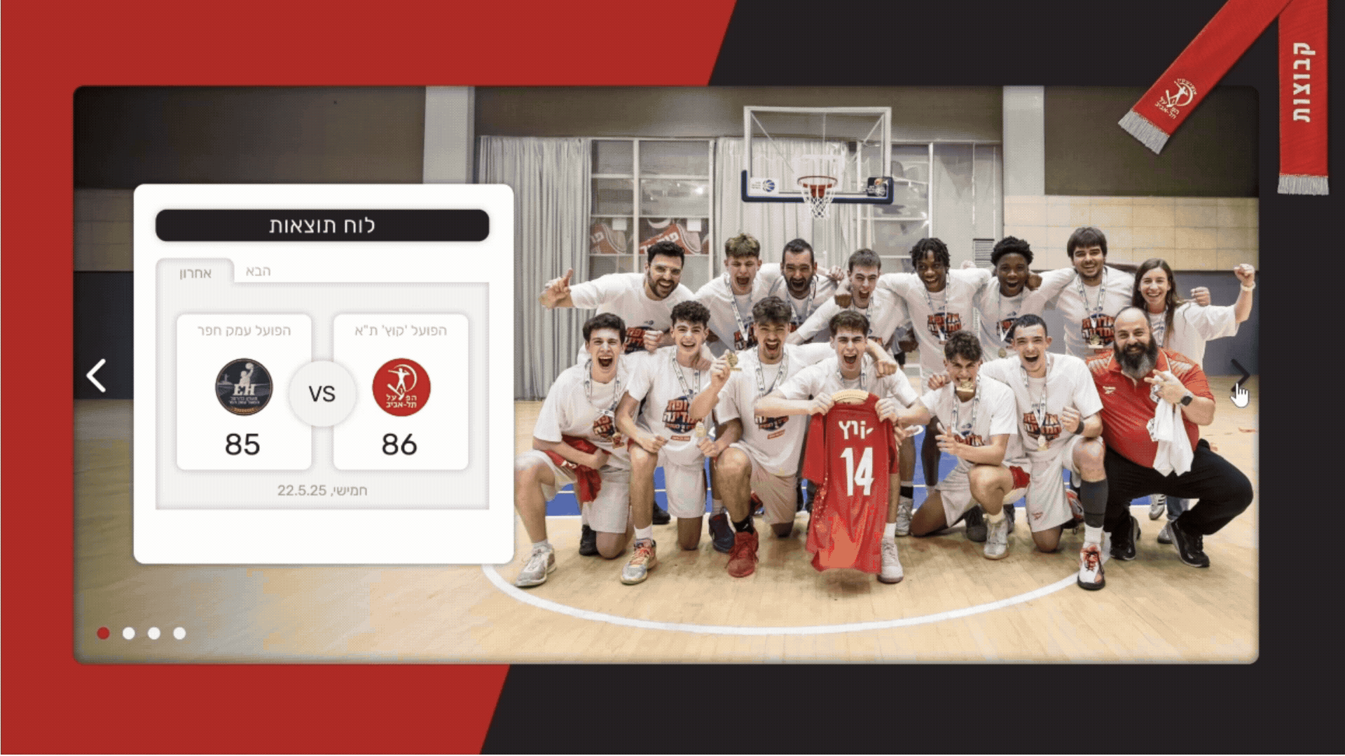 Hapoel Ossishkin Tel Aviv is a community-owned supporters’ association that owns 19% of the Hapoel Tel-Aviv Basketball Club. The association runs youth programs, community initiatives and social-impact projects - driven by values of transparency, participation and collective influence.