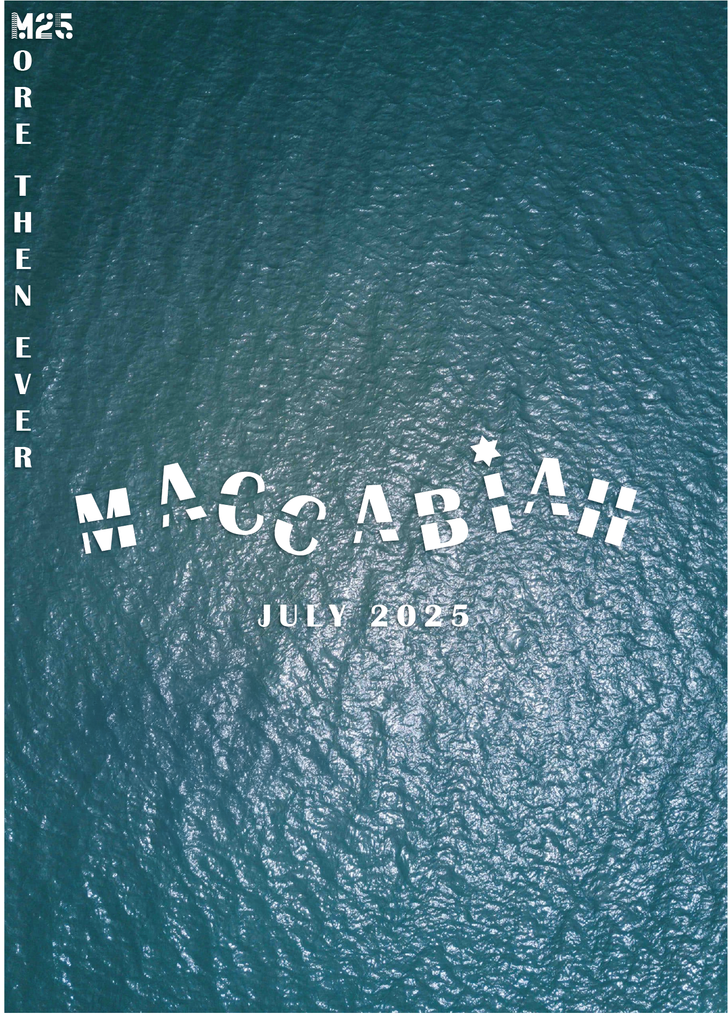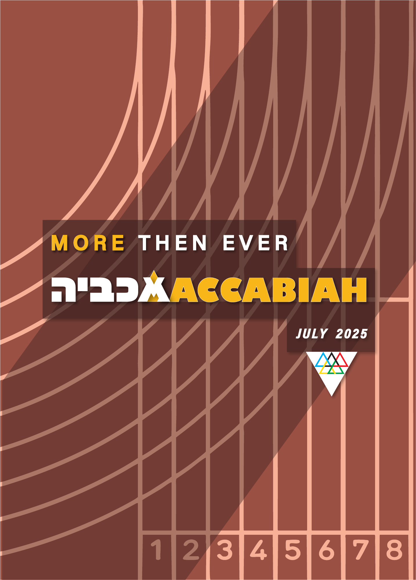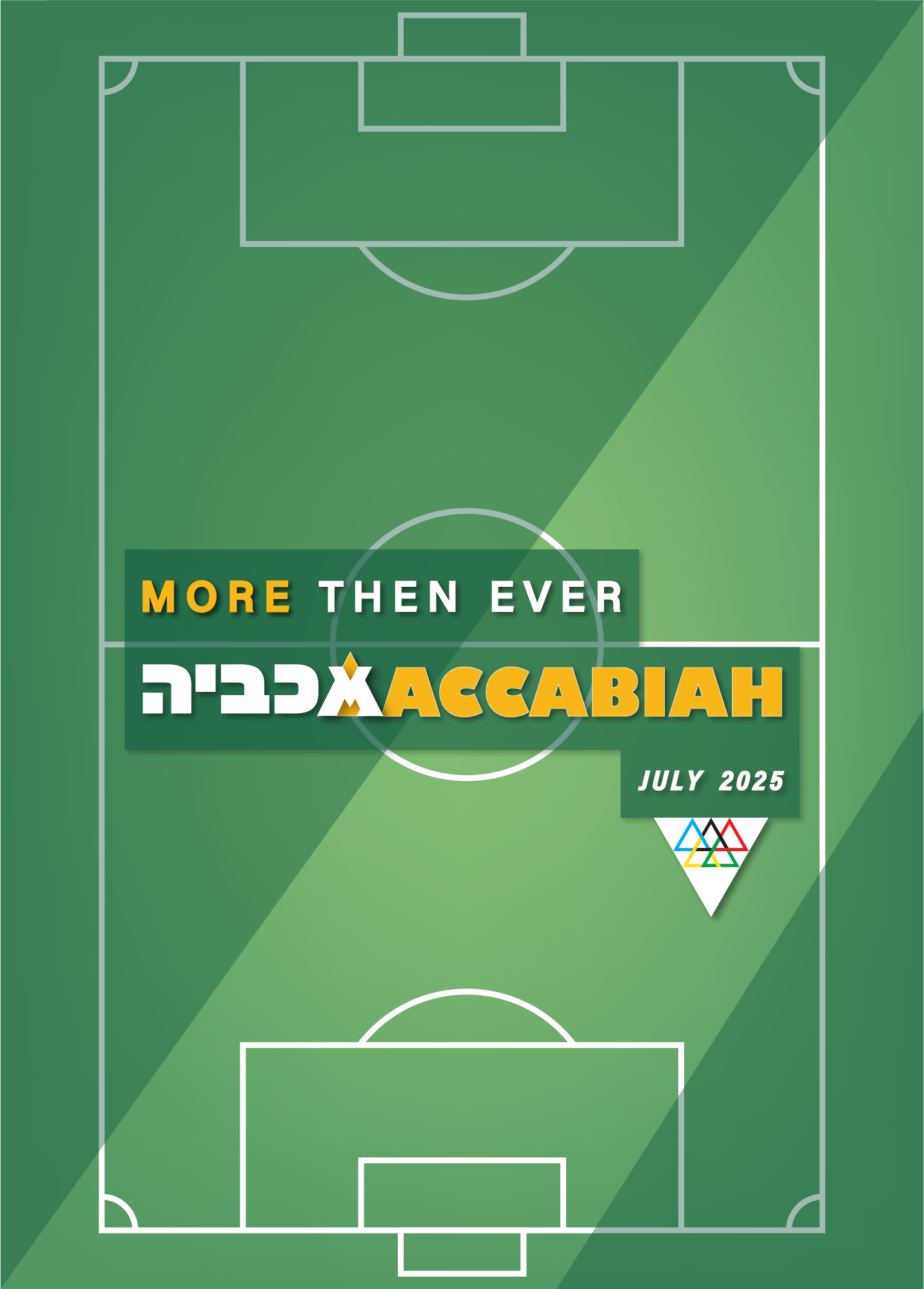 The first symbol deconstructs the Star of David into its six component triangles, rearranged into a new variation inspired by the Olympic rings - serving as a metaphor for the Maccabiah, often referred to as the Jewish Olympics. The second symbol combines the Hebrew letter “מ” (Mem) with the Latin “M”, forming a unified mark that echoes the shape of the Olympic torch.