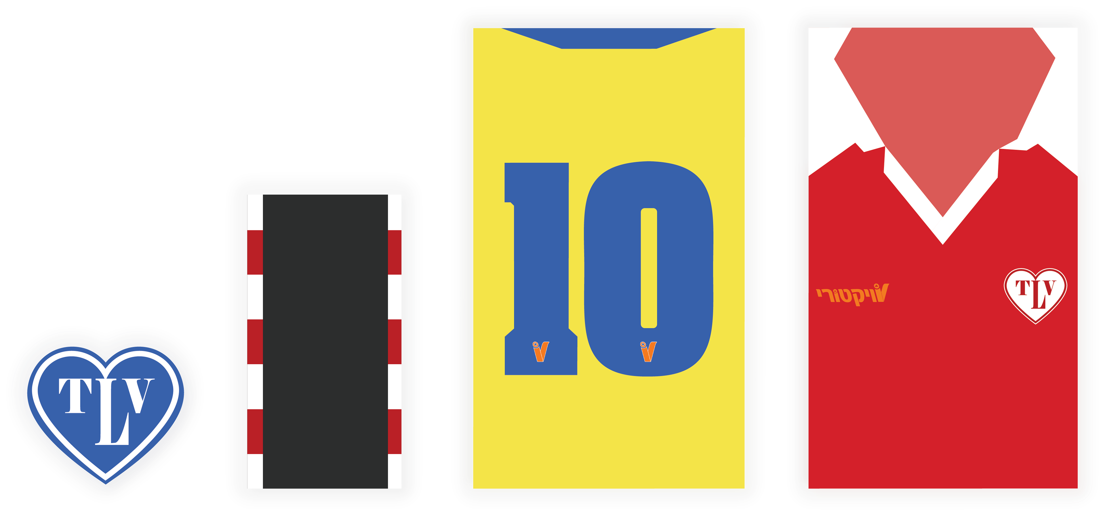 Jersey silhouettes, a unified TLV emblem, numeric markers, and references to curb markings operate within a consistent visual logic.